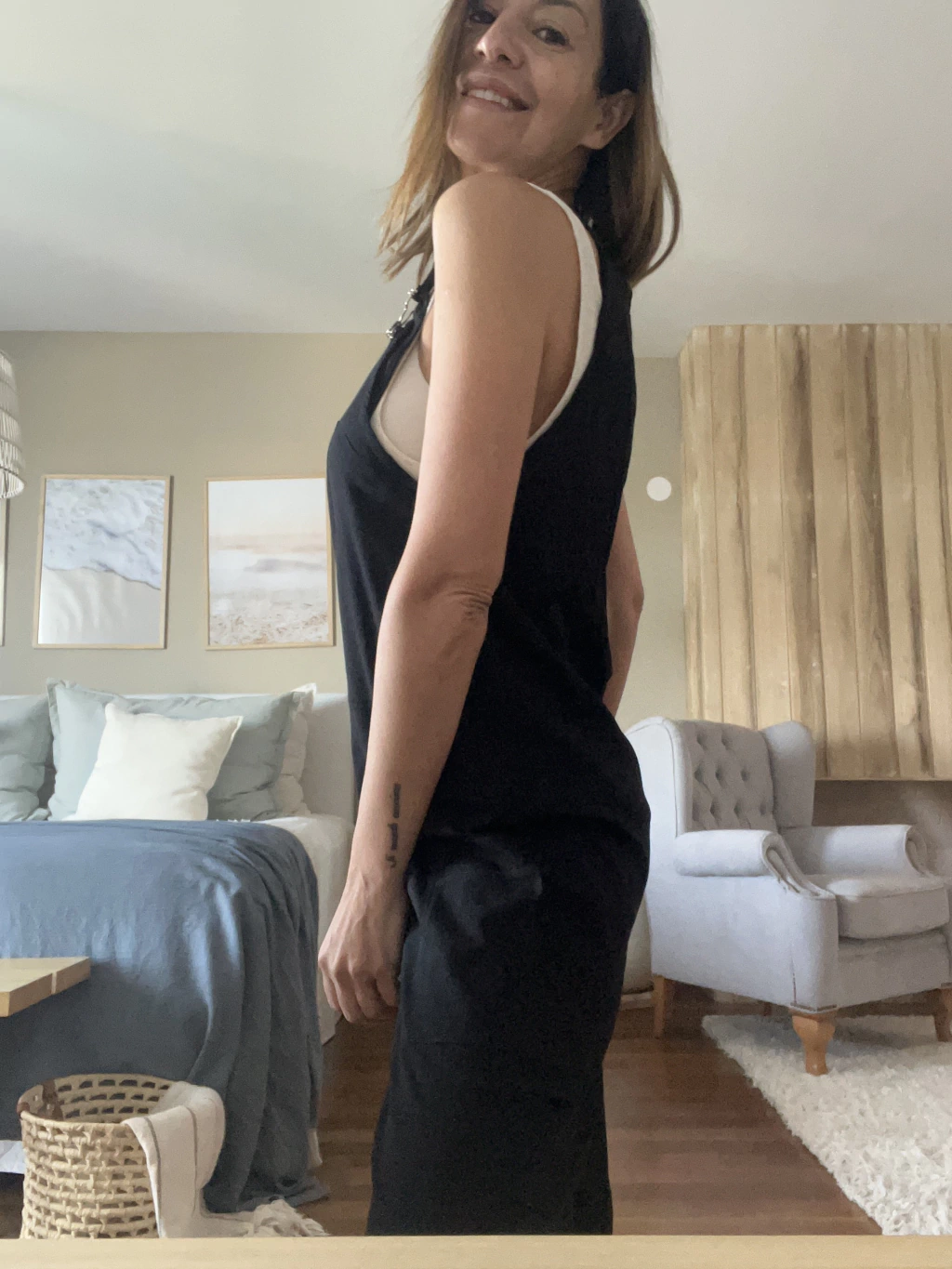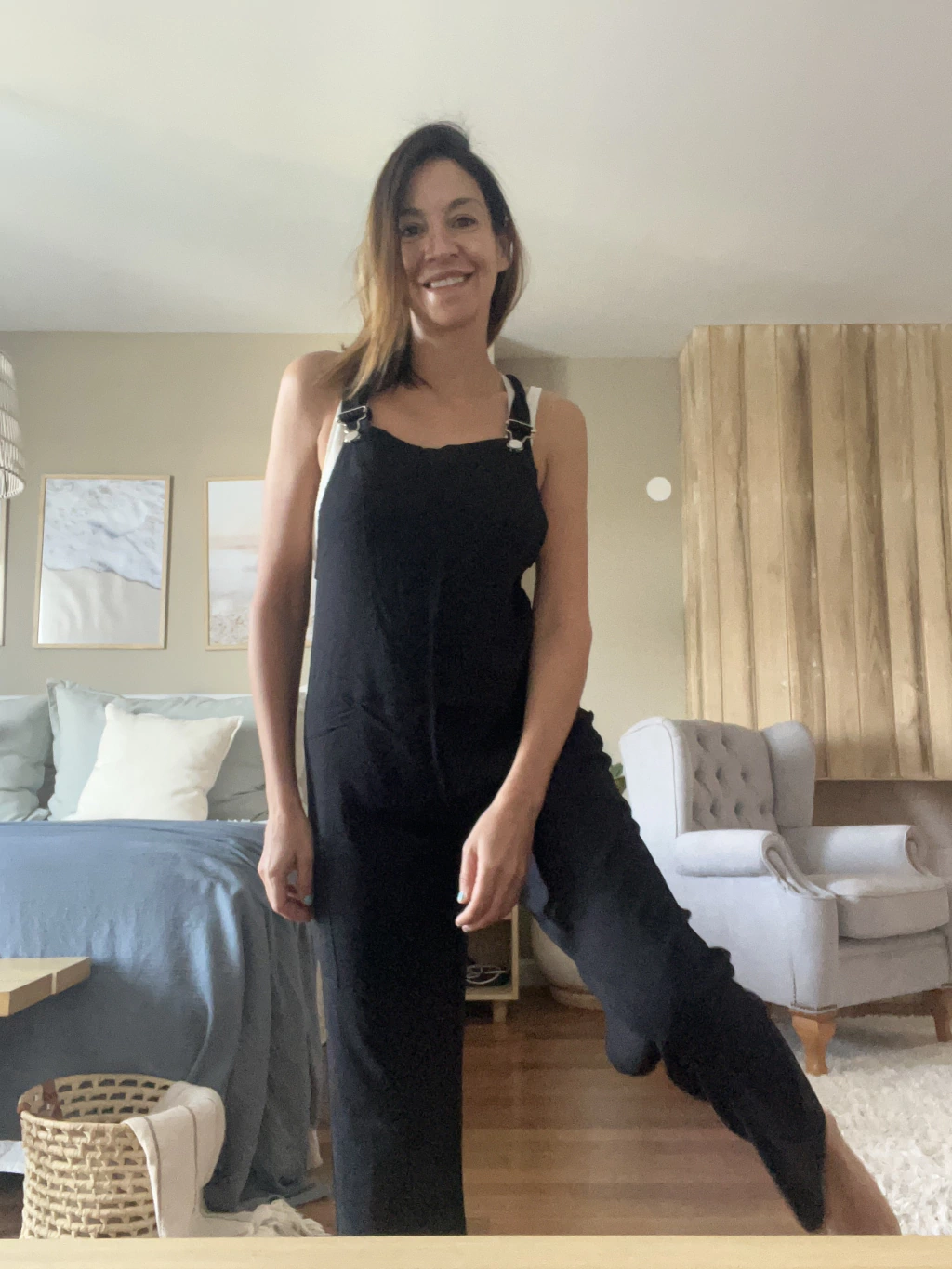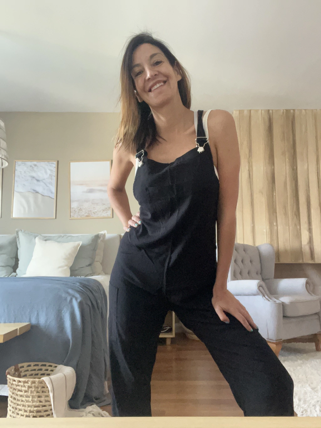 Mono de Lino, bolsillos delanteros, breteles con broches, piernas rectas, capri, muy fresco.