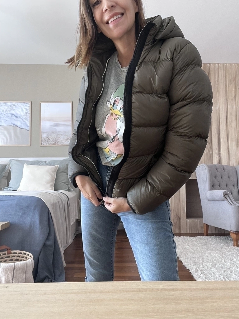 Con cierres negros que le aportan un toque moderno y contrastante. Capucha desmontable para que la adaptes según tu estilo y necesidad. Súper práctica y abrigada, perfecta para cualquier ocasión.