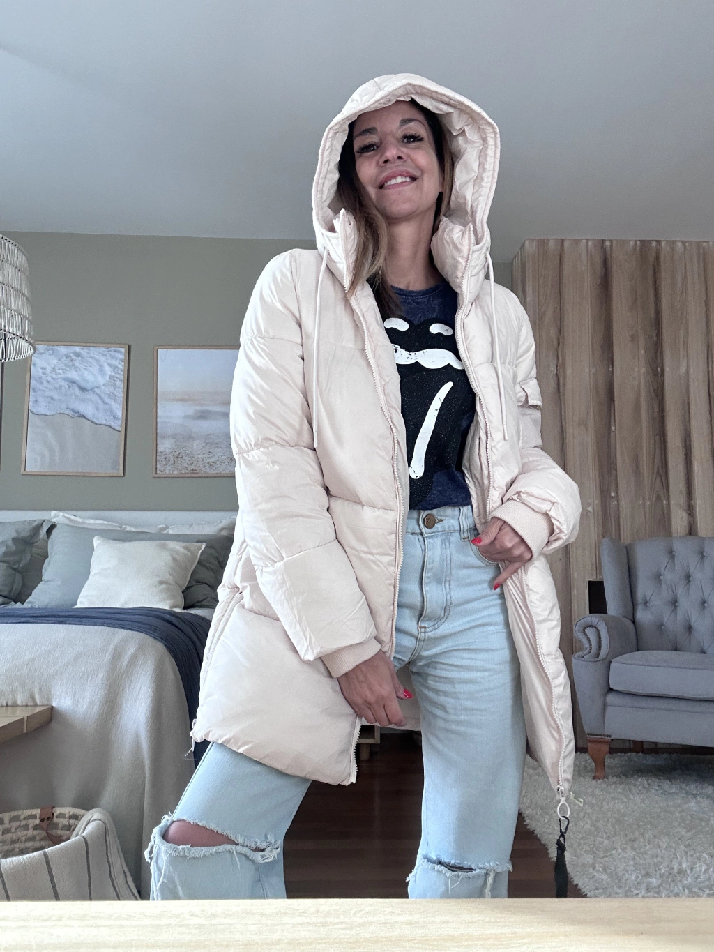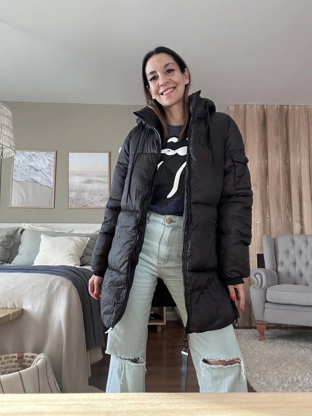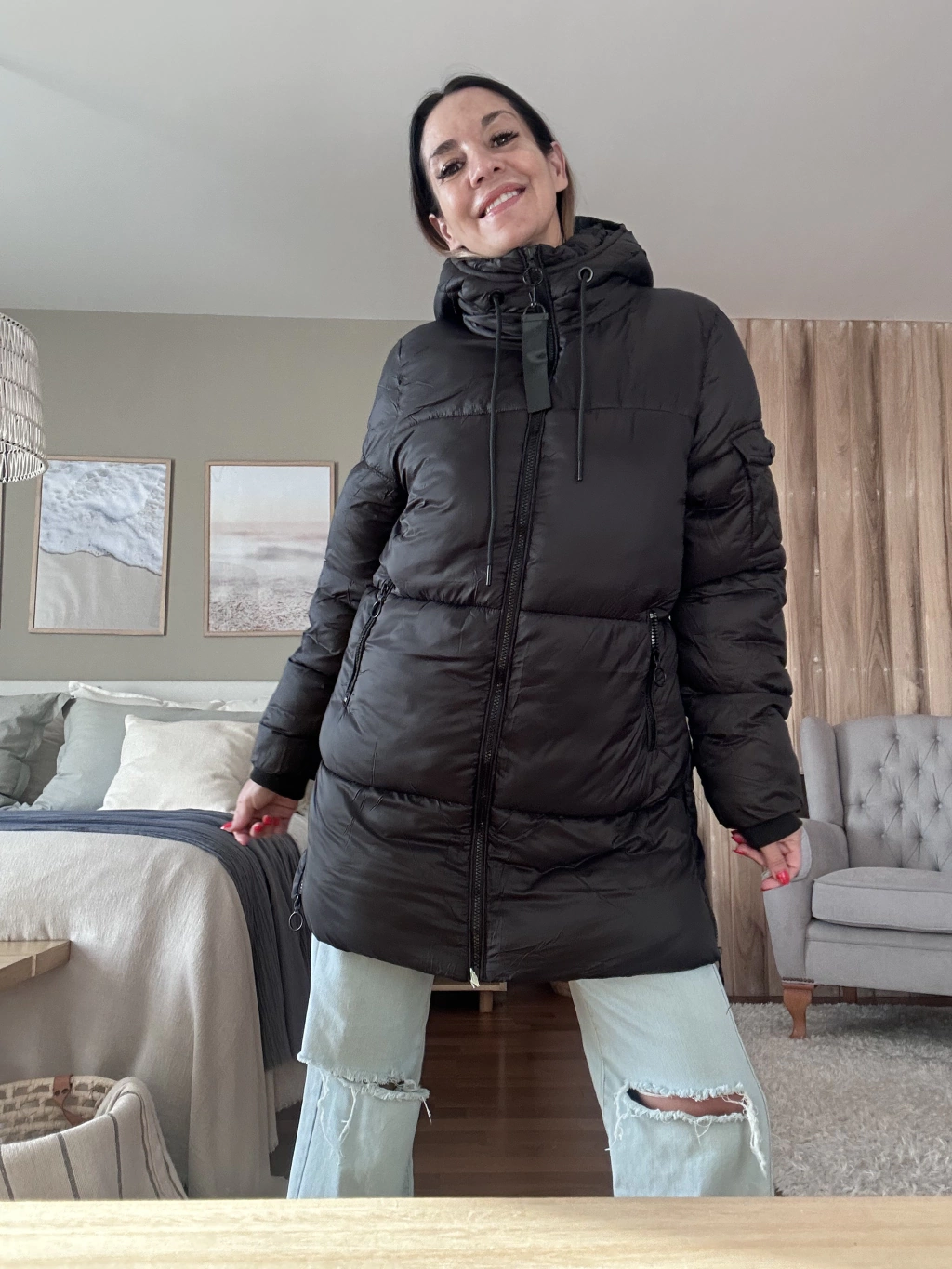 Puffer larga, súper abrigada y pensada para acompañarte en el día a día. Tiene capucha fija (no desmontable), detalle de bolsillo en una manga, bolsillos externos y un bolsillo interno con cierre ideal para llevar el celular con seguridad.