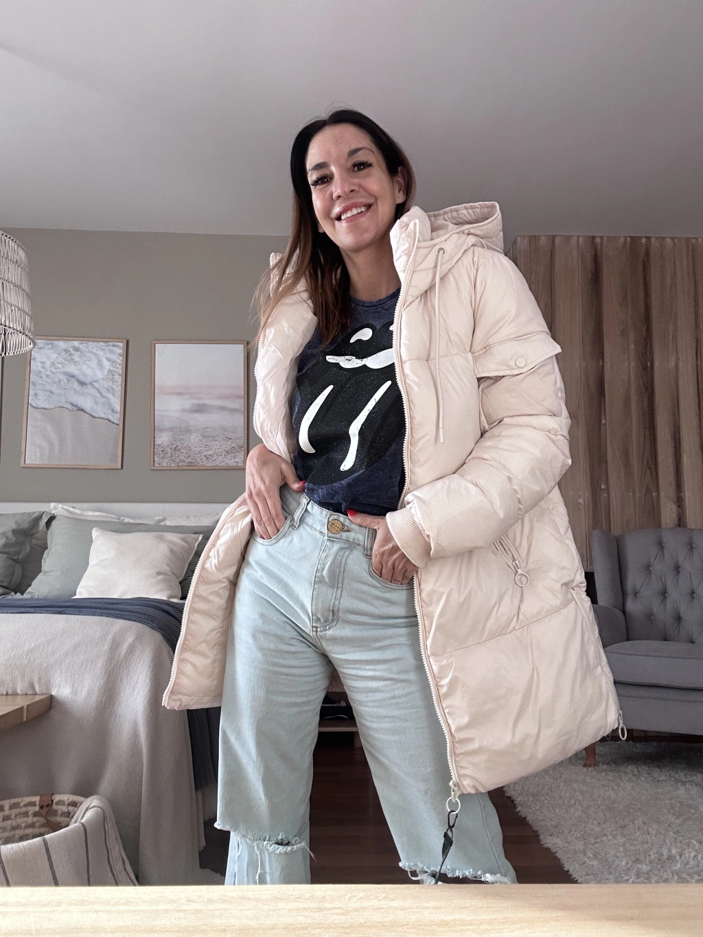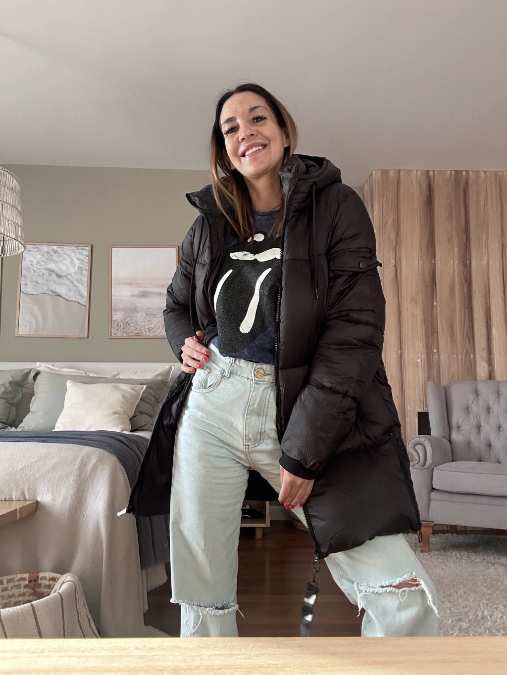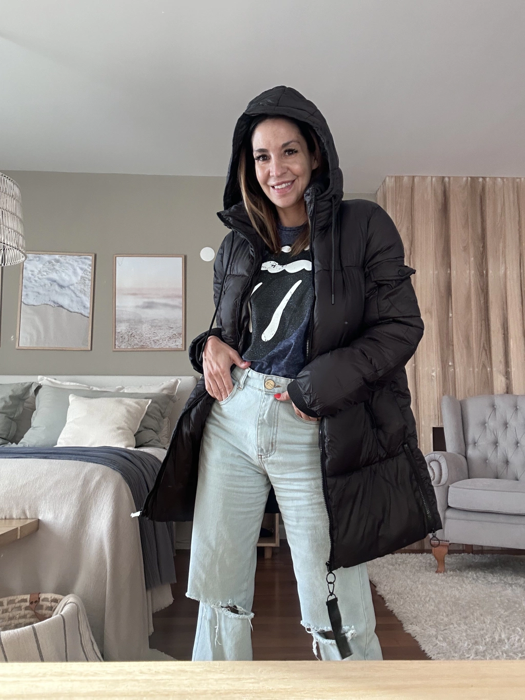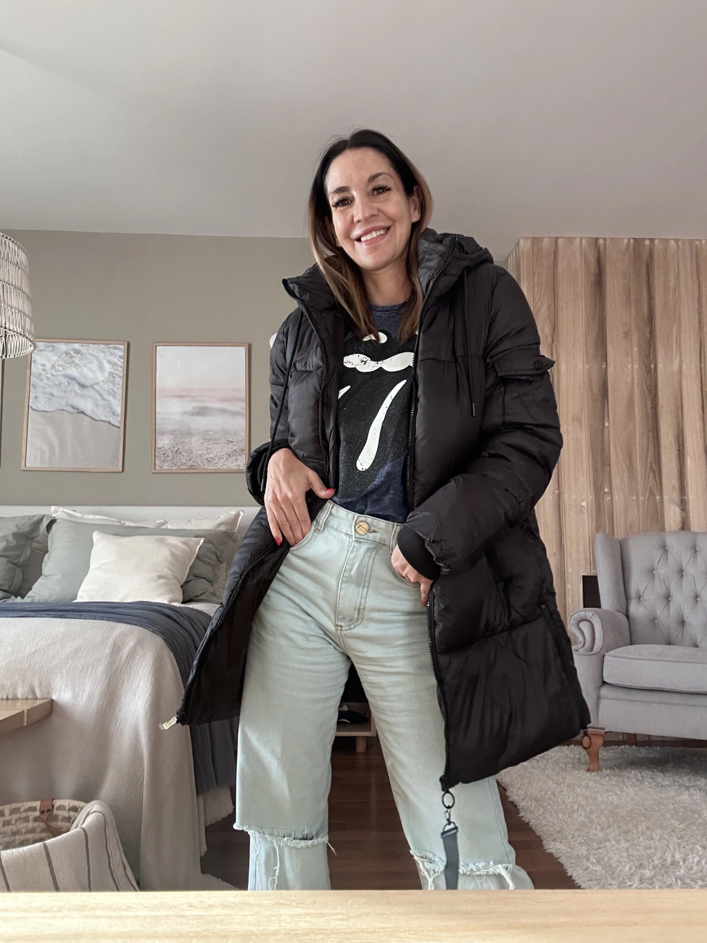Puffer larga, súper abrigada y pensada para acompañarte en el día a día. Tiene capucha fija (no desmontable), detalle de bolsillo en una manga, bolsillos externos y un bolsillo interno con cierre ideal para llevar el celular con seguridad.