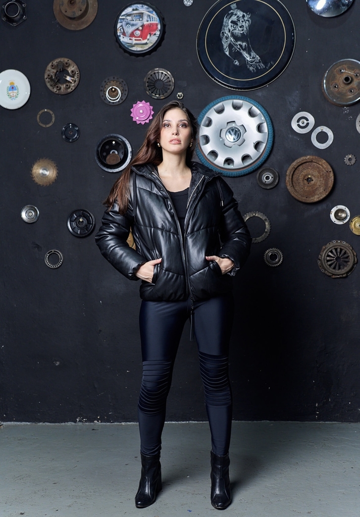 Muy abrigada, canchera y con toda la onda. Confeccionada en eco cuero, forrada y con bolsillos externos súper prácticos. Tiene capucha fija (no desmontable) y correas internas para que la lleves colgada estilo mochila: ideal para la ciudad.